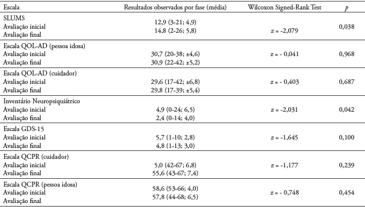 Resultados: Após a aplicação do programa, verificaram-se melhorias estatisticamente significativas nos sintomas neuropsiquiátricos (p = 0,042) e na cognição (p = 0,038).