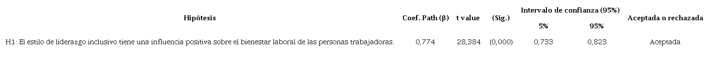 H1: El estilo de liderazgo inclusivo tiene una influencia positiva sobre el bienestar laboral de las personas trabajadoras.