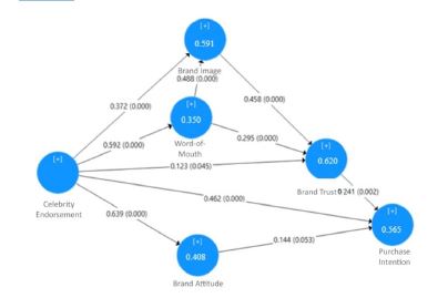 Furthermore, we have evaluated the impact of the consequences of celebrity endorsement on purchase intention, and we have found a strong direct impact. The impact of brand attitude on purchase intention has not been proven in this study; although SCE may not have a direct impact on sales, it has proven that it clearly has had an impact on brand attitude, and brands can benefit from it when it is positive.