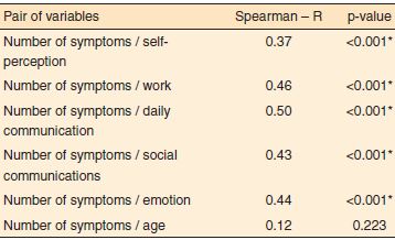 Tal resultado revela o número de sintomas vocais proprioceptivos relatados como um indicador do impacto negativo sobre a qualidade de vida das docentes, reforçando achados de outros estudos(22,29).