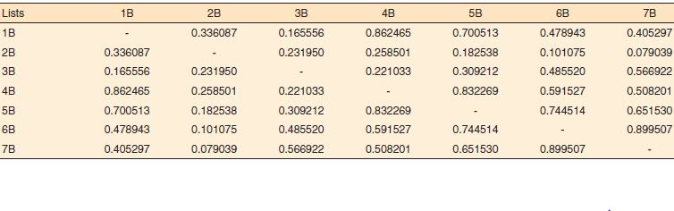 A análise comparativa da pontuação obtida entre as diferentes listas está demonstrada na Tabela 4.