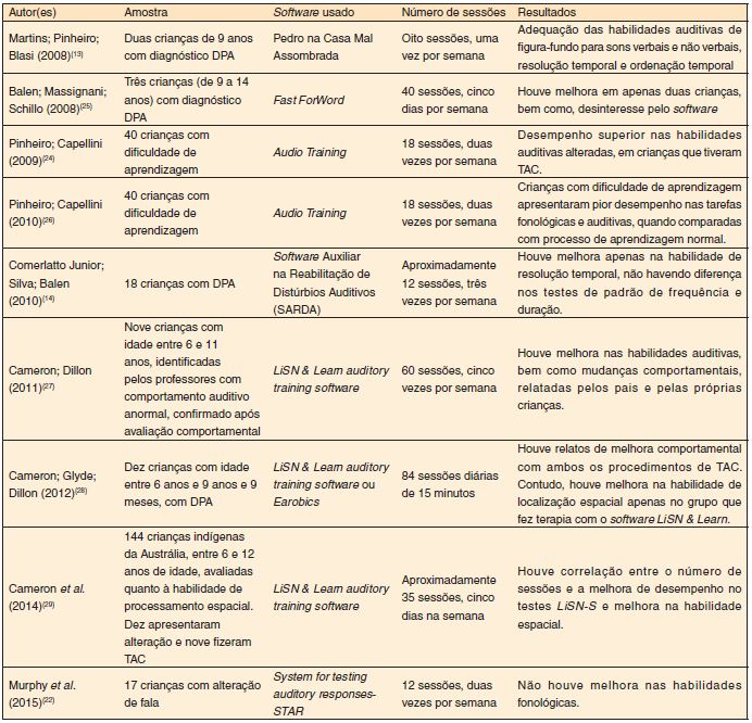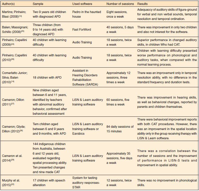 Frente aos resultados obtidos, elaborou-se um quadro com os principais trabalhos publicados, que mostram a eficácia do uso de software no TAC em crianças, a fim de uma apresentação mais clara e didática de tais achados (Quadro 2).