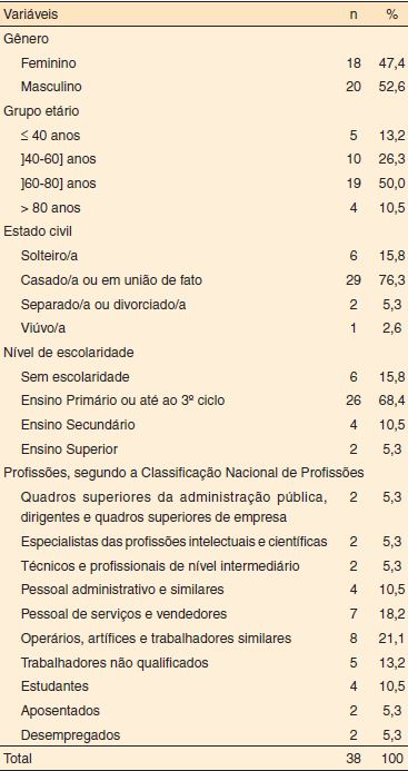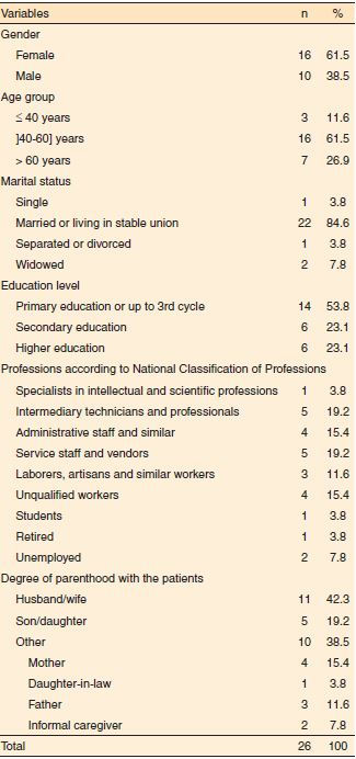 Métodos: A amostra foi constituída por 38 doentes e 26 familiares e/ou cuidadores informais. A coleta de dados foi realizada em um hospital central e escolar e em uma unidade local de saúde em Portugal, por meio de dois questionários distintos.