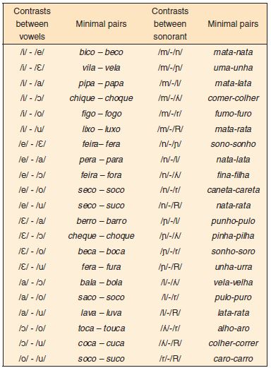 Parte do sistema fonológico de uma língua é composta pela distinção de sons que os falantes percebem e produzem. As distinções dos sons de uma língua são marcadas por uma série de propriedades acústicas (duração, intensidade, características espectrais, etc.), que se integram para constituir um contraste fonológico(1).