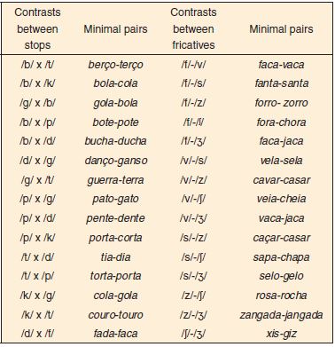 No entanto, a mera presença de distinções fônicas no input linguístico não é suficiente para que sejam adquiridas pelas crianças(2). Ao contrário, para que possa detectar que dois sons são usados contrastivamente em sua língua, o aprendiz deve ser capaz de, não somente discriminar esses dois sons, como também identificá-los ou categorizá-los do ponto de vista perceptivo-auditivo.