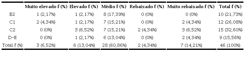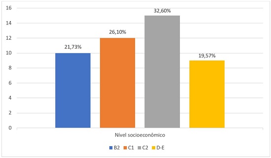 Quanto à análise socioeconômica, notou-se que o público atendido se encontrava entre as classes B2 e D-E, conforme a classificação da Associação Brasileira de Empresas de Pesquisa ( Figura 2).
