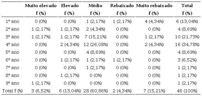 Em relação à escolaridade, os participantes frequentavam entre o ensino fundamental I e o II, com predomínio de estudantes do ensino fundamental I (85,95%).