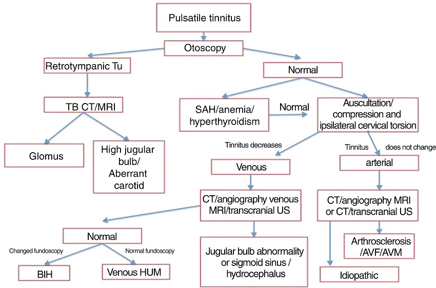 Fig. 2 shows a suggested investigation flowchart for pulsatile tinnitus.