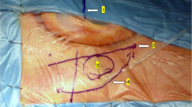 All procedures were carried out by the same surgical team. Under general anesthesia, the patient is placed in supine position and the head is elevated around 15° by laying it on "rubber donut". If required (in case of overweight patients with short neck and/or large shoulders), additional elevation of head up to 30° can be obtained by laying additional sheets under the "donut". The head is turned contralaterally to the surgical side to make the operative site facing upwards and is slightly flexed over the opposite shoulder. The forehead is fastened with adhesive tape; no pin fixation of the skull is used. During the operation, the facial nerve function is assessed by electromyography monitoring24 system (NIM 2.0 Medtronic Inc®, Minneapolis, MN, USA).