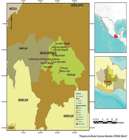 Oaxaca es un territorio ancestral para diversas poblaciones originarias. El caso que analizamos corresponde a 16 pueblos predominantemente zapotecos, de la región de los Valles Centrales, donde 54.4 % de los municipios que albergan población indígena se ubican en el rango de alta marginación mientras que 45.5 % presenta alta marginación (Coronel, 2006).