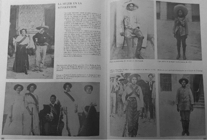 Las fotos incluidas, entre ellas una de las más famosas del imaginario iconográfico de la Revolución mexicana, ratifican las últimas dos líneas del fragmento: dominan las imágenes donde se reafirma el binarismo genérico tanto por la indumentaria como por la presencia del “juan”.