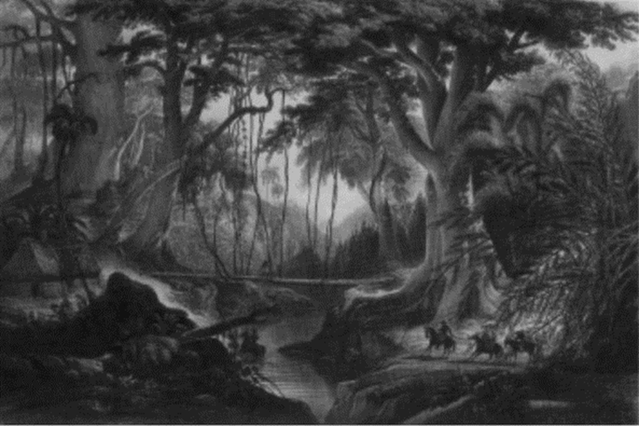 Sin embargo, el punto focal del cuadro literario-litográfico no está puesto necesariamente en el monumento, sino en lo que lo rodea, esto es, el pueblo y la naturaleza: