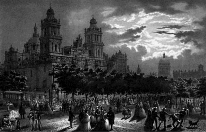Descrita la naturaleza mexicana al mejor estilo romántico, esto es, como proyecto que debe su riqueza y armonía a la benignidad y la generosidad de Dios, México y sus alrededores se da a la tarea de describir en ese marco “sublimes catedrales y magníficos palacios; galanos acueductos y hospitales; colegios y prisiones; plazas y fuentes” (Zarco, 1855: 5) que pueblan y enriquecen a la Ciudad de México. Y aquí está lo importante, el artificio ético y estético que solo la hermandad palabra-imagen pudieron resolver: se realizan una serie de descripciones que representan y explican la calidad artística y la grandiosidad y magnificencia de las edificaciones, fuentes y plazas, solo que, lo más importante, esas obras monumentales que son la Catedral Metropolitana, la Plaza de la Constitución, el Palacio de Minería o las casonas de Tacubaya se visualizan siempre en medio del exuberante y pródigo marco del entorno, integradas a la naturaleza mexicana gracias a la perspectiva aérea, elevada del pintor -entonces se pusieron de moda en México los paseos en globos aerostáticos-. Así pues, el sentido y la función que se otorga y cumplen las vistas y los retratos plásticos y literarios de México y sus alrededores es el de crear, de inventar precisamente esa historia y esa identidad.