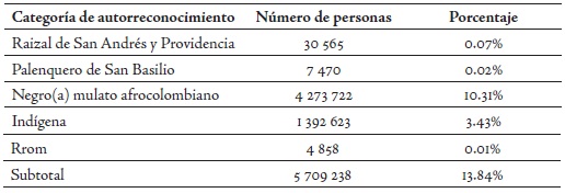 Para contextualizar mediante cifras la composición de los grupos étnicos en Colombia se presentan los siguientes números, basados en el censo del año 2005: