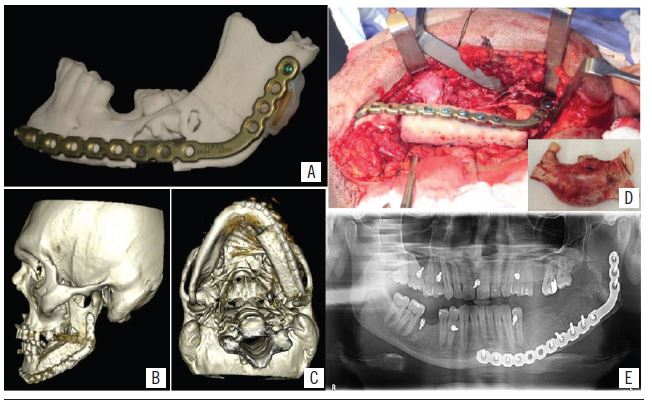 Given these findings, the following were ordered: multislice computed tomography (CT) for a more detailed evaluation of the lesion (Figure 1D), confection of a prototype biomodel for surgical planning, as well as laboratory tests and surgical risk evaluation for the conduction of lesion resection and immediate reconstruction.