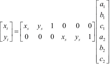 The mathematic model for the two-dimensional affine transformation is expressed as follows: