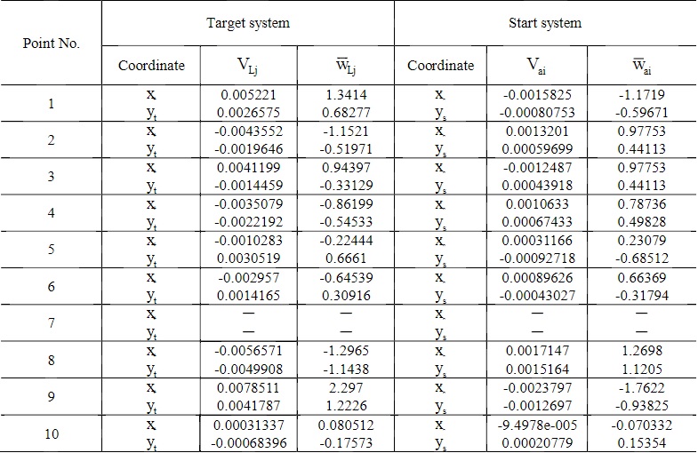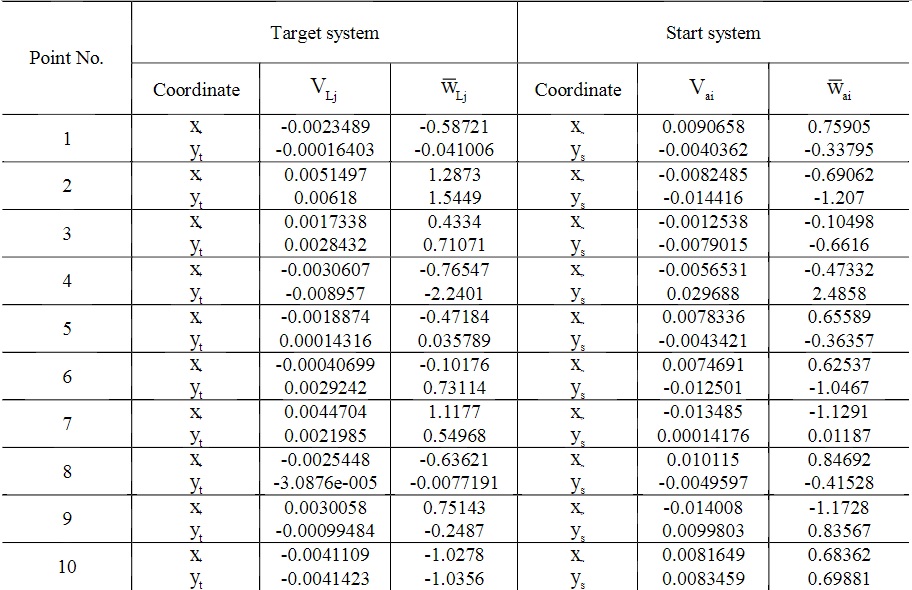 Scheme 2: The outlier of magnitude 0.1 m is added into both components of point 4 in the start system.