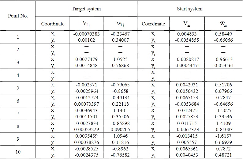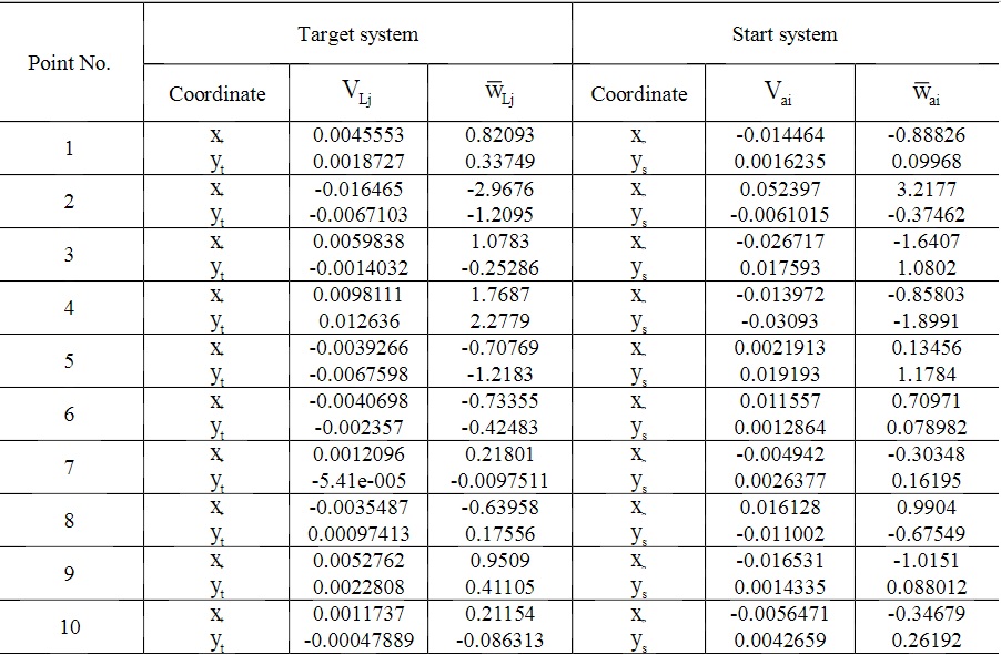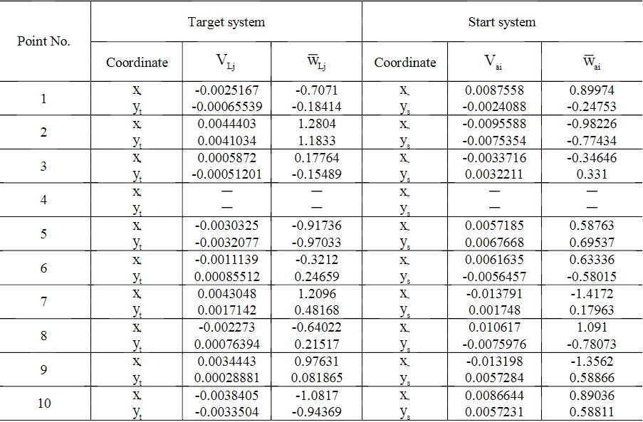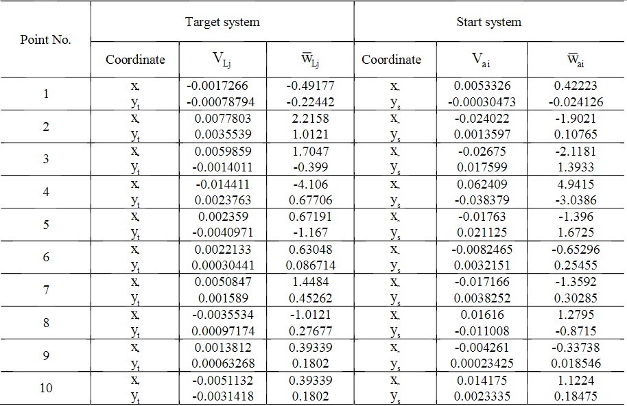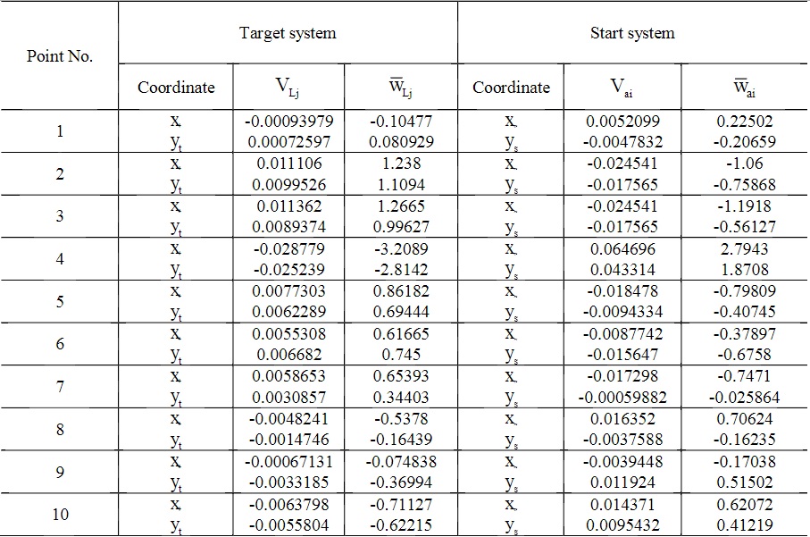 Scheme 3: The outlier of magnitude 0.1 m is added into the xs component of point 4 in the start system and the yt component of point 4 in target system.