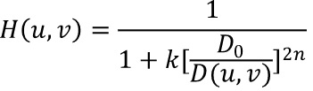(2)Where D0 is the cut-off frequency and, traditionally, D0 is a fixed value. By taking into account the fact that different thicknesses of cloud can result in different components of illumination and reflection, D0 should vary with the thickness of cloud cover. k is obtained in the condition D(u,v)=D0 and H(u,v)=√2/2, k=0.414; n=1.
