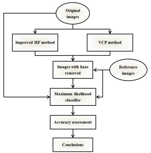 The improved HF and VCP are the two of most frequently-used haze removal approaches. Majority of peer studies mainly focused on the development of the haze removal algorithm. However, less research was dedicated to studying the effects of these two haze removal algorithms on land cover classification. Meanwhile, the relationships between haze removal and image classification accuracy still needed to be explored further.