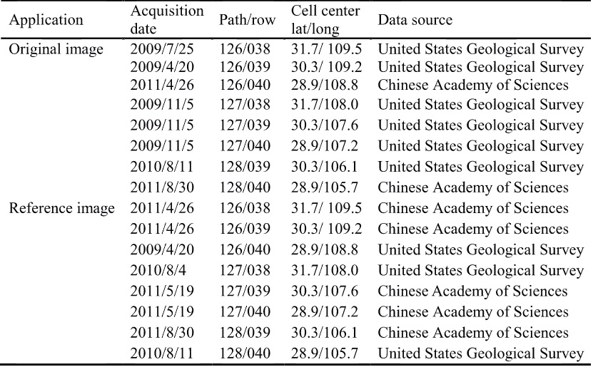 With a long history of widespread use, Landsat data has become one of the most valuable datasets that are available for mapping land cover information (Cohen et al., 1998; Watmougha et al., 2011). Although selected image data are now available for free, which was one of the constraints highlighted by Foody (2002), users of Landsat data are still suffer from the problem that there may be no option but to select clouds affected image and search for a proper method to identify and remove this contamination when an image from a specific date is required for subsequent data analysis (Annemarie, 2012). Therefore, how to remove or reduce the influence of thin clouds from the remote sensing image in the preprocessing process becomes the barrier of related research. In this paper, 16-scene Landsat TM images (8-scene original and reference images) were collected for the current study, which were listed in Table 1.