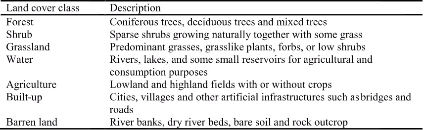 The study area consisted of diverse land cover classes including man-made and natural types. Referring to the land use and land cover classification system