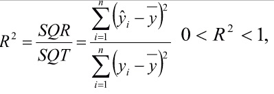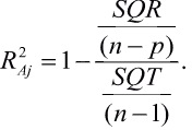 (3)Em que n é o número de elementos da amostra, p é o número de parâmetros no modelo, SQR é a Soma de Quadrados da Regressão e SQT é a Soma de Quadrados Total.