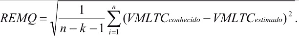 Além do cálculo do REMQ, os resultados foram comparados com aqueles obtidos pelo método convencional, utilizando modelos de regressão, extraídos de Malaman et al. (2012), no qual se utilizaram modelos de regressão para o cálculo do VMLTC com o mesmo conjunto de dados. Nesse trabalho, foram estimados e comparados distintos modelos de regressão a fim de encontrar aquele que melhor representasse a variável resposta, o VLMTC.