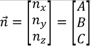 With the determination of Equation 1 it is possible to express the normal vector to the n plane π