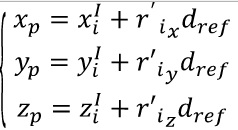 At last, coordinates of the hidden point (xp, yp, zp) can be determined by using the distance covered by the reflected ray as a parameter: