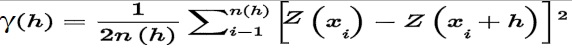 Assim, para determinar experimentalmente o semivariograma é considerado para cada valor de h, todos os pares de pontos Z (xi ) e Z (xi +h), separados pela distância ||h|| e a função semivariograma (γ(h)) é calculada a partir da Equação 1 (Camargo et al., 2002).