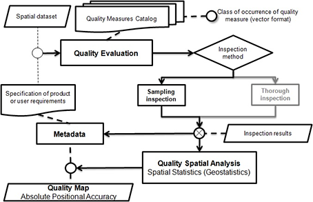ISO 19100 series of standards are intended for geographic information, specifically the ISO 19157:2013 and ISO 19115:2003 standards, which refer to quality of spatial dataset. Geospatial metadata facilitates the location, identification, and even provides a qualitative and quantitative description of the quality of a set of geospatial data. They are all of great value for the Geosciences field, but the results of quality inspection, complete or by sampling, proposed by these standards, are purely descriptive and tabular. The spatial representation of the results of quality inspection, although trivial and intuitive, is not addressed in this series of standards.