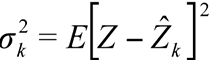 is the kriging estimator and provides the variance of the estimate; and Z is the observed value (Guerra, 1988; Landim, 1998; Santos, 2010b).