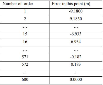 The processing starts with the program generating a base table containing control point errors, followeding by a normal distribution that simulates a real situation. In the example, the table corresponds to a 600-record list (“Number of control points”). No more than 10% (“CP Percentage above the CAS” = 90%) may have errors higher than the value of the “Admissible Error (according to the CAS provided to the user as an input parameter).