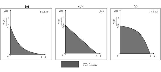 where SCA*observed is obtained through the integral, defined between zero and equivalent range, of the difference between 1 and the ratio between power model and equivalent sill. And MD is the longest distance between sample points. Figure 3 shows the equivalent observed spatial correlation area.