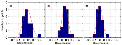 Table 3 and Figure 10 have shown the descriptive statistics of the relative differences of the geoid heights with pairs of points (Equation 42). In this case, 265 baselines formed with minimum distances of 1 km were used, considering the 24 GNSS/levelling points.