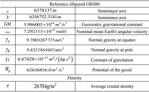 The constants used in this work are shown in Table 1. These constants are presented by Moritz (1984) and IERS (International Earth Rotation and Reference Systems Service) Technical Note (Petit and Luzum, 2010).