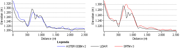 Both systems ASTER GDEM and SRTM presented some problems for mapping surfaces of low roughness such as water bodies.