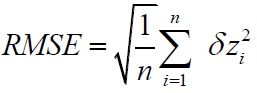 The Root Mean Square Error (RMSE), given by Equation 3, was calculated by estimating the error between the observed values (ASTER GDEM v2 or SRTM v3) and the reference values (LIDAR) in relation to the number of points checked (Chrysoulakis et al. 2011). The calculation was performed for each relief declivity class.
