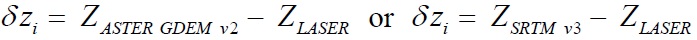 ASTER GDEM v2 and SRTM v3 models RMSE, taking LIDAR model as reference, calculated for full study area (entire city of Belo Horizonte), corresponding to 365,925 sample points indicated smaller errors for SRTM v3 (RMSE = 4.95 m) and larger errors for ASTER GDEM v2 (RMSE = 6.44 m). So, it can be inferred that for the total study area it is more advantageous to use the DEM SRTM v3 than ASTER GDEM v2.