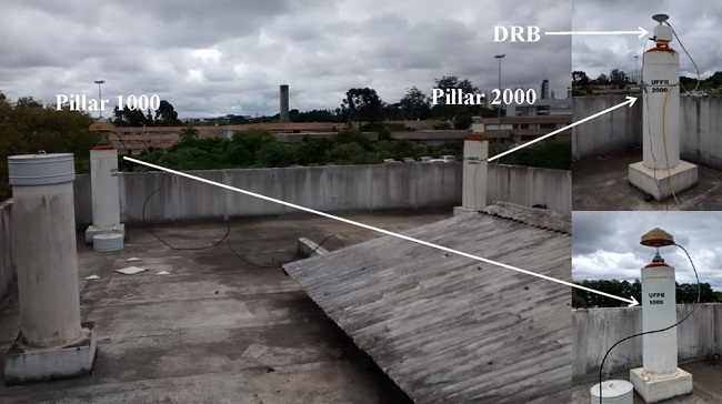 A series of calibrations were performed at BCAL/UFPR for the selected antenna over March and April of 2015. During the calibration process performed on the GNSS antennas, the relative calibration method was applied at an absolute level. In this process, a Leica Geosystems antenna, model AR25 was used as a reference and it was installed onto the reference pillar, named as pillar 1000. The antenna used for the calibration tests, the LEIAX1202GG, was positioned over the DRB mechanism and both were installed onto the auxiliary pillar, named pillar 2000 (Figure 5). The time for each calibration series was 24-hour at a data collection rate of every15 seconds.