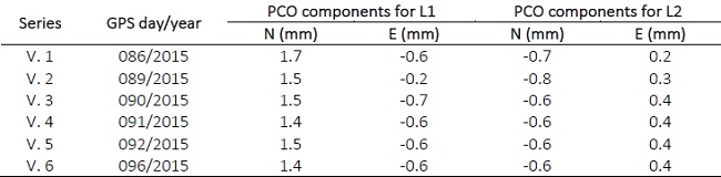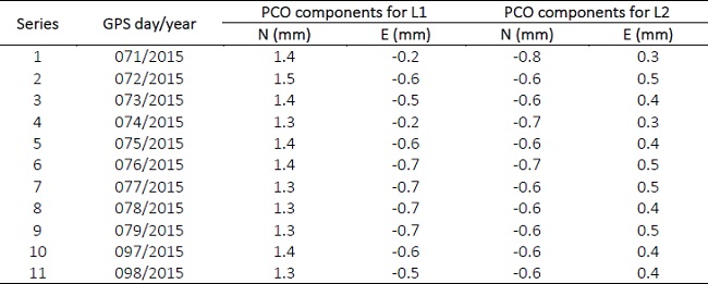 Tables 1 and 2 present the training data were the PCO components are the result from the relative calibration in the field. On Table 1, one notes the values for the components of the PCO for L1 and L2.