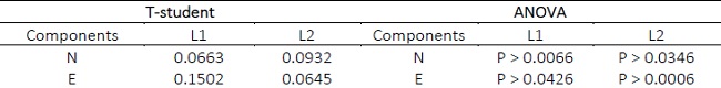 Table 7 shows the results for the evaluation statistic of the average differences for each of the analyzed components found significance over T-student and ANOVA distributions with α = 5%.