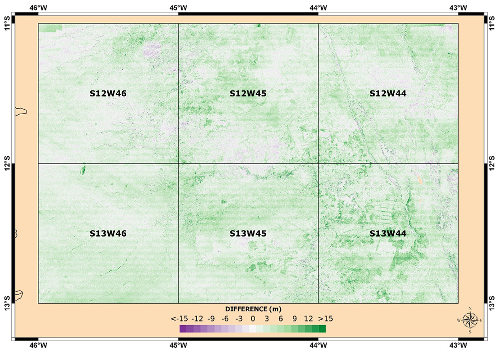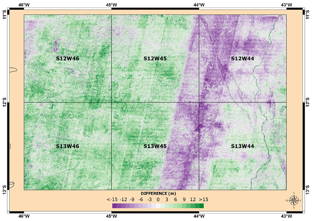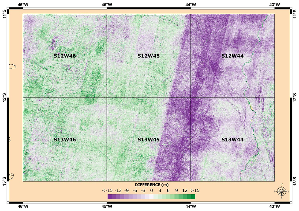 Figure 9 confirms the tendency of the SRTM models to be above the reference, occurring the biggest differences in areas of natural and cultivated vegetable cover.