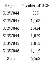 For this evaluation were used GCP from GNSS orbital survey, through relative static method, executed by the Brazilian Army. It was collected more than 35,000 points in order to evaluate and approval the positional accuracy of the DEM for the Mapping Project of the State of Bahia (Penha et al., 2012). Of this total, 6,568 points were used in this research. Figure 2 shows the control points on the study region and Table 4 shows the number of GCP for each region.