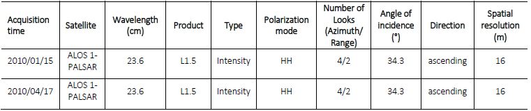 Before analysis, the digital numbers of the multi-temporal ALOS-1 PALSAR data were converted into radar sigma naught values as follows: