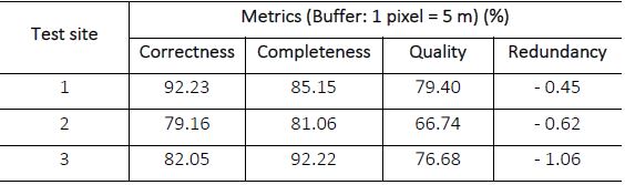 Similarly, for the test sites 2 and 3, 81.06% and 92.22% of the actually present road network were extracted, being correct, respectively, 79.16% and 82.05%.