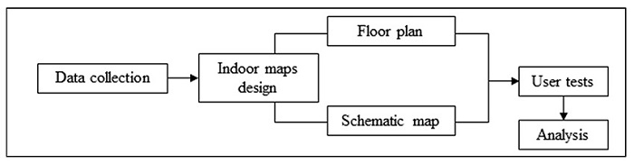 The first step of this research was to understand how to design a Schematic Map for an indoor environment and determine which elements (spatial and non-spatial attributes) are needed in the representation of the indoor environment in order to assist the process of user orientation and localization. Once the maps had been designed, we conducted a study to compare the subjective preferences of users with regard to Floor Plans and Schematic Maps.