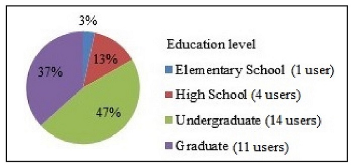 Stage 1 involved user identification and characterization. All the users of the sample had basic knowledge of text and symbology reading and interpretation. Figure 7 shows users’ level of schooling (Stage 1).