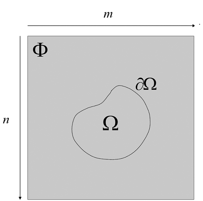 The next step consists in restoring the shadow areas discriminated in the previous step. To accomplish this, a hybrid inpainting approach inspired on ( Casaca, 2010) is redesigned for the multispectral RS imagery context, more specifically to perform shadow restoration. Given the input image f and the shadow mask Ω (here namely inpainting domain), the inpainting technique aims at filling-in f(Ω), by propagating the genuine information of the image f located in the fill front f(∂Ω), i.e., the source region (see Figure 3).